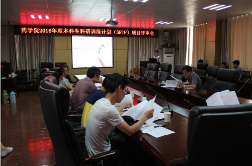 5月30日下午,在药学院六楼会议室召开了2016本科生科研训练计划项目评审会。评审会邀请了省重点实验室7名博士、硕士生导师担任了此次项目答辩的评委。药学院分党委书记谢勇、省重点实验室主任汪选斌出席了评审会。