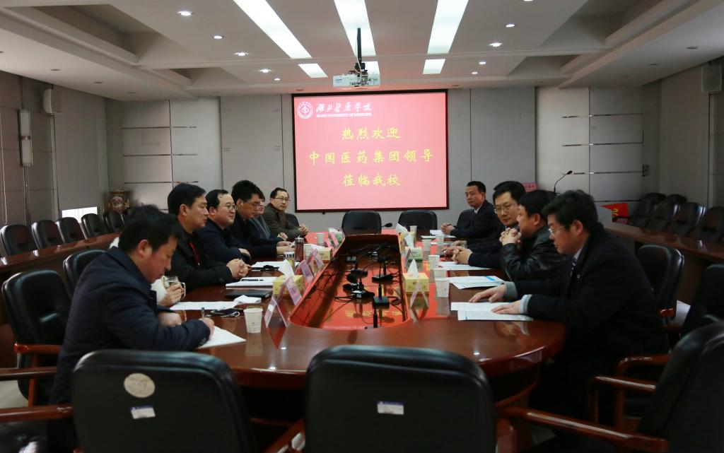 本网讯(记者 李嫣)1月17日上午,中国医药集团国际医药卫生公司总经理李粲带领副总经理马让和国药东风医疗健康产业有限公司总经理何宏生、副总经理兼东风总医院院长魏涧、东风总医院党委书记李斌、国药集团医疗健康产业有限公司运营部副总经理陈永鹏一行到我校商谈合作事宜,校领导涂汉军、李和、魏文芳、李云霞、严世荣以及党政办公室主任李涛、第二临床学院分党委书记邵义光参加见面会。