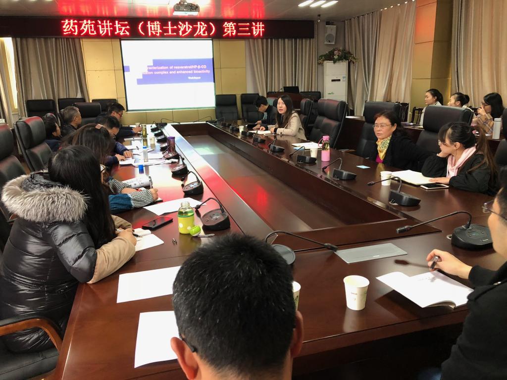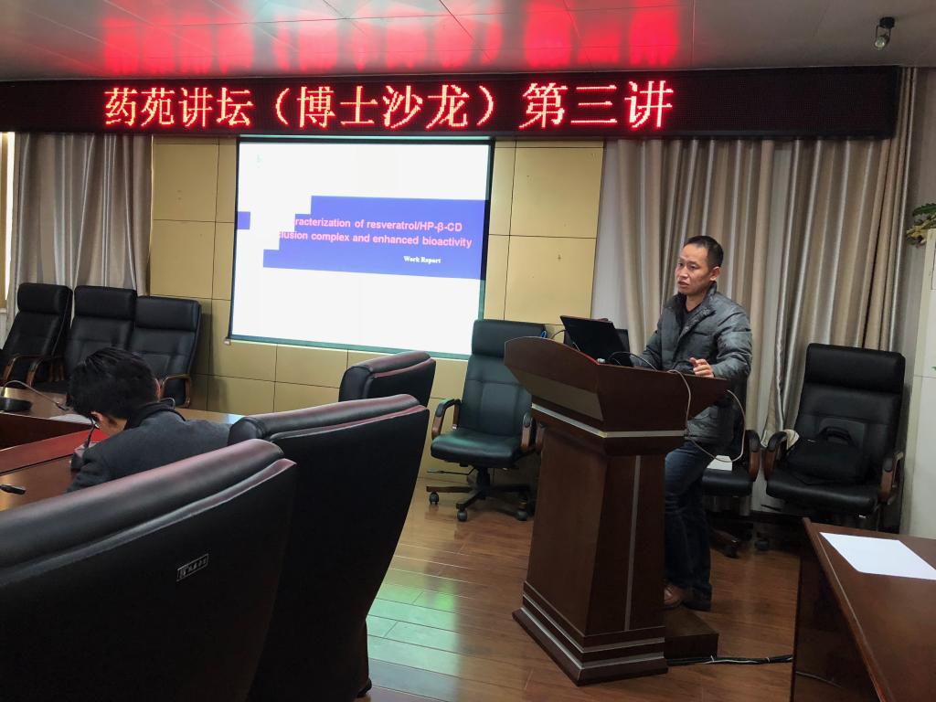 本网讯(通讯员 张艳))11月29日下午,由研究生院与药学院联合举办的药苑讲坛(博士沙龙)第三期在药学院六楼会议室举行,郝新才博士做了题为“Characterization of resveratrol/HP-β-CD inclusioncomplex and enhanced bioactivity”的学术讲座。本次讲座由药学院副院长李飞主持。