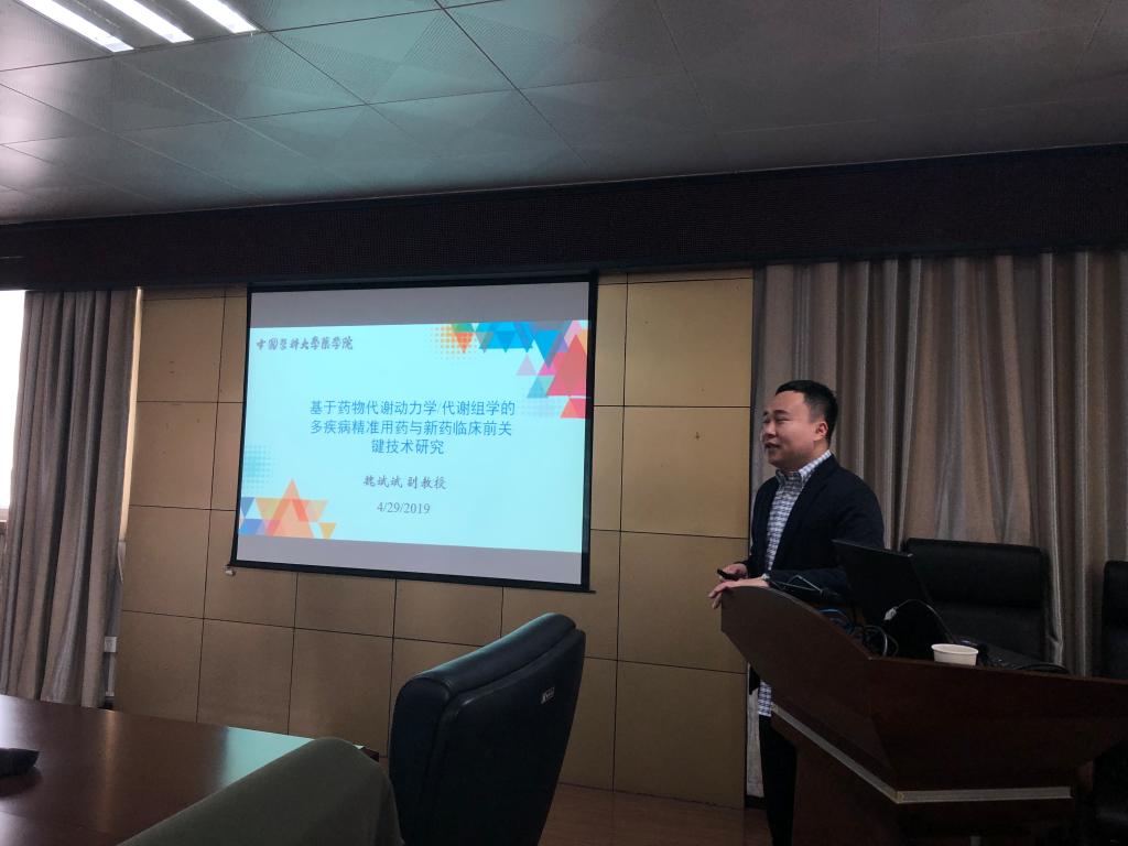 赵万红首先代表药学院致辞,表达了对魏斌斌博士的欢迎和感谢。魏斌斌博士向在场师生作了题为基于代谢组学、精准用药与新药临床试验关键技术研究。魏博士从五味子醇甲药代动力学/代谢组学及抗老年痴呆(MD)作用机制、EGCG的药代动力学及抗老年痴呆(MD)作用机制和基于代谢组学的儿童个性化精准用药与新药临床试验关键技术研究三个方面详细介绍其团队近年来取得的研究成果和成果转化。