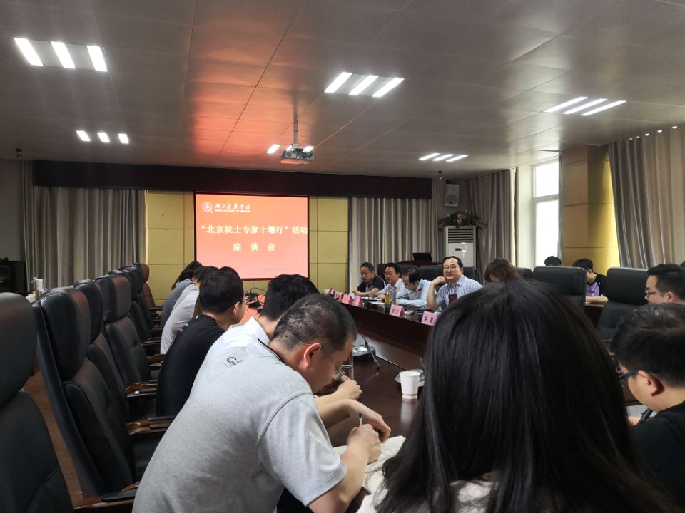 本网讯(通讯员 张艳)5月28日上午,“2019年北京院士专家十堰行”活动座谈会在药学院六楼会议室举行。座谈会由药学院分党委书记赵万红主持,校党委书记涂汉军出席了座谈会。