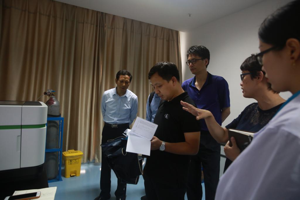专家组一行首先现场考察了武当特色中药研究湖北省重点实验室,参观了百草园,考察了科教楼8层、10层科研平台,重点查看了实验室硬件建设,以及仪器使用记录等。
