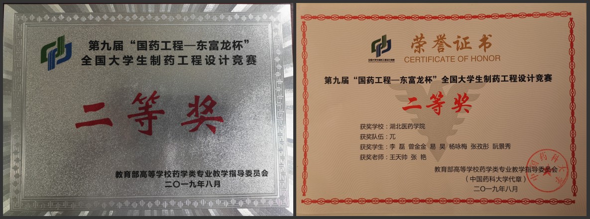 本网讯(通讯员 曾金金)由教育部高等学校药学类专业教学指导委员会主办,浙江大学(主赛区赛)、上海应用技术大学(东部赛区)、湖北大学(西部赛区)承办的第九届全国大学生制药工程设计大赛,8月25日在浙江大学落下帷幕。本届赛事全国163所高校的650支队伍报名,最终有134所高校的303个作品参赛。我校提交三个设计作品,其中由药学院青年教师王天帅、张艳担任指导教师,16级制药工程专业李磊,16级中药制药专业曾金金、易昊,药护16级制药工程专业阮景秀,17级制药工程专业杨咏梅、张孜彤组成的“湖北医药学院π队”获得全国二等奖。