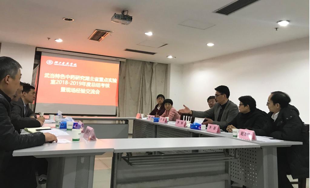 会上,汪选斌汇报了武当特色中药研究湖北省重点实验室2018年度自评情况、存在问题以及解决办法。胡扬根汇报了2018-2019年度武当天然产物的活性成分与结构修饰研究方向工作,汪选斌汇报了2018-2019年度武当特色中药药理活性研究方向工作,杜士明汇报了2018-2019年度武当中药资源调查及基源鉴定方向工作,陈琴华汇报了2018-2019年度武当中药分析研究方向工作。