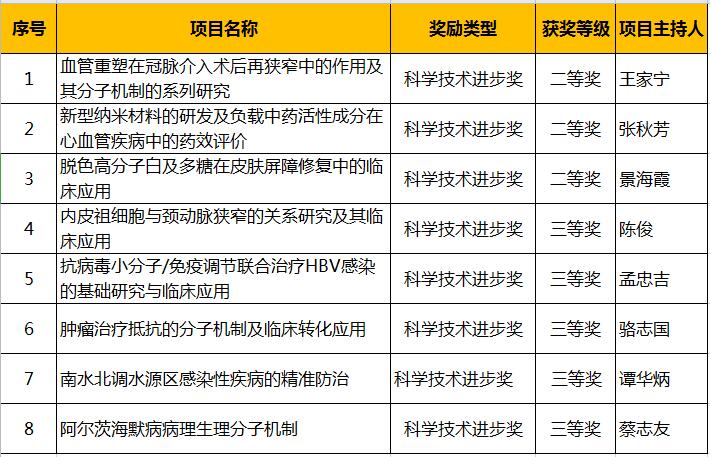 附表:我校获2019年度湖北省科学技术奖成果一览表
