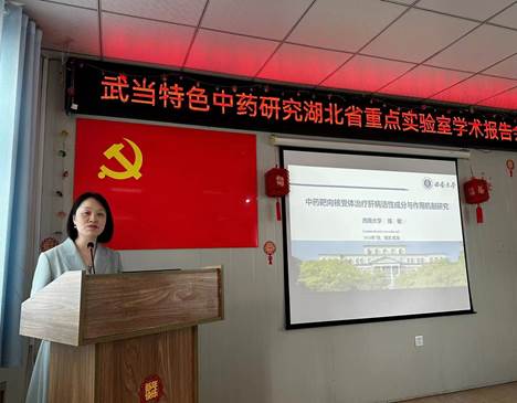 在专家报告环节,陈敏教授和廖志华教授分别作了《中药靶向核受体治疗肝病的药效物质基础研究》和《药用托品烷生物碱生物合成与代谢工程研究》的报告。以具体研究的中药实例充分展示了藏药道地药药效物质基础、靶点与作用机制研究和药用植物天然产物合成生物学和代谢工程研究领域的新技术、新思路和新成果。随后,药学院副院长赵利军代表东道主作了《南水北调水源区连翘产业化关键技术研究》的专题讲座。几位专家教授的报告都以道地药材为出发点,通过分享成果,加强了武当特色中药研究湖北省重点实验室与省外相关领域专家的交流与合作,为筹备好下半年的国际会议奠定了基础。