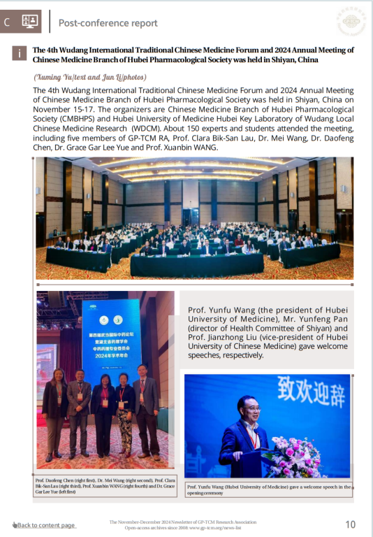 国际中医药规范研究学会新闻月刊报道第四届武当国际中药论坛暨湖北省药理学会中药药理专业委员会2024年学术年会